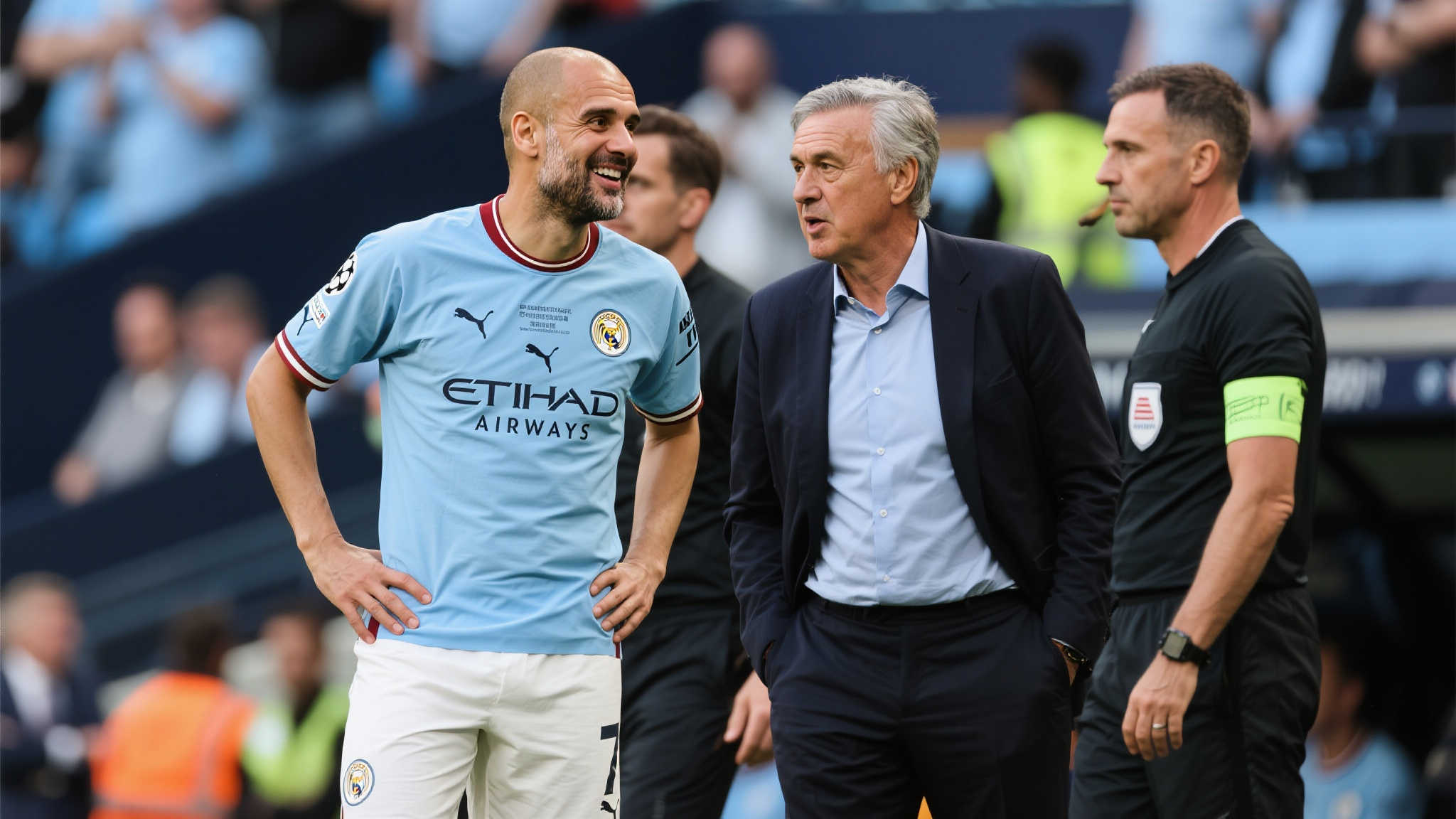 随着欧洲足球的竞争日益激烈,各大主帅之间的较量成为媒体和球迷们津津乐道的话题。近日,曼城主教练瓜迪奥拉的一句幽默话语引发关注:“很高兴安切洛蒂不在皇马了,因为他总能影响比赛。”这番言论既体现出对竞争对手的高度认可,也透露出一种紧张而微妙的竞技氛围。